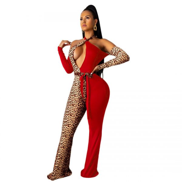 Tags: leopard print jumpsuit, Sexy color block