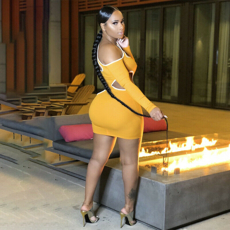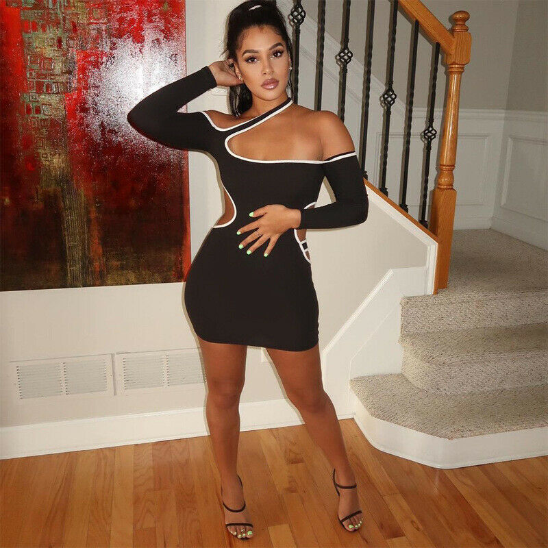 HOLLOW OUT COLOR BLOCK MINI DRESS