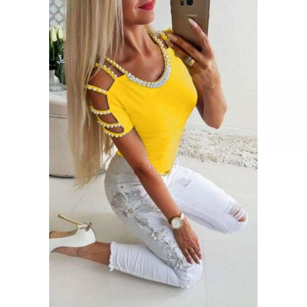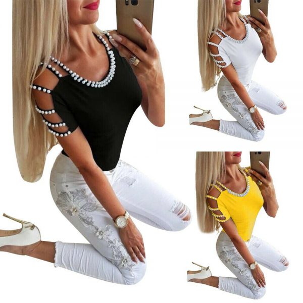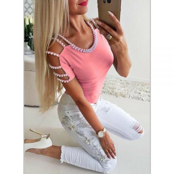 Pretty hollow out sleeve pearl stitch design top!