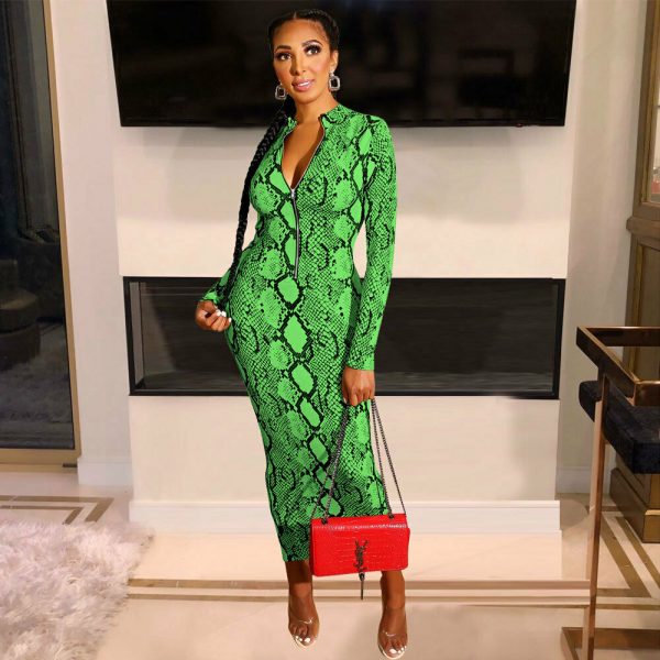 LONG SLEEVE SNAKE SKIN ZIPPED MAXI DRESS *PLUS SIZE AVAILABLE*