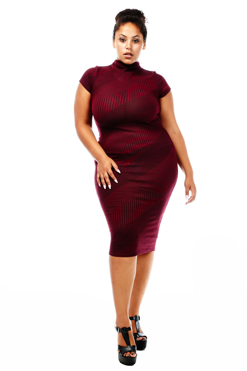 Curvy Ribbed Choker Neck Sweater Midi Dress!