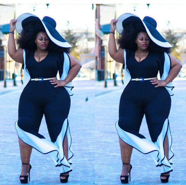 Tags: Color Block plus size jumpsuit, Sexy flare design