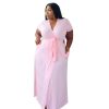 PLUS SIZE SHORT SLEEVE WRAP W/BELT MAXI DRESS