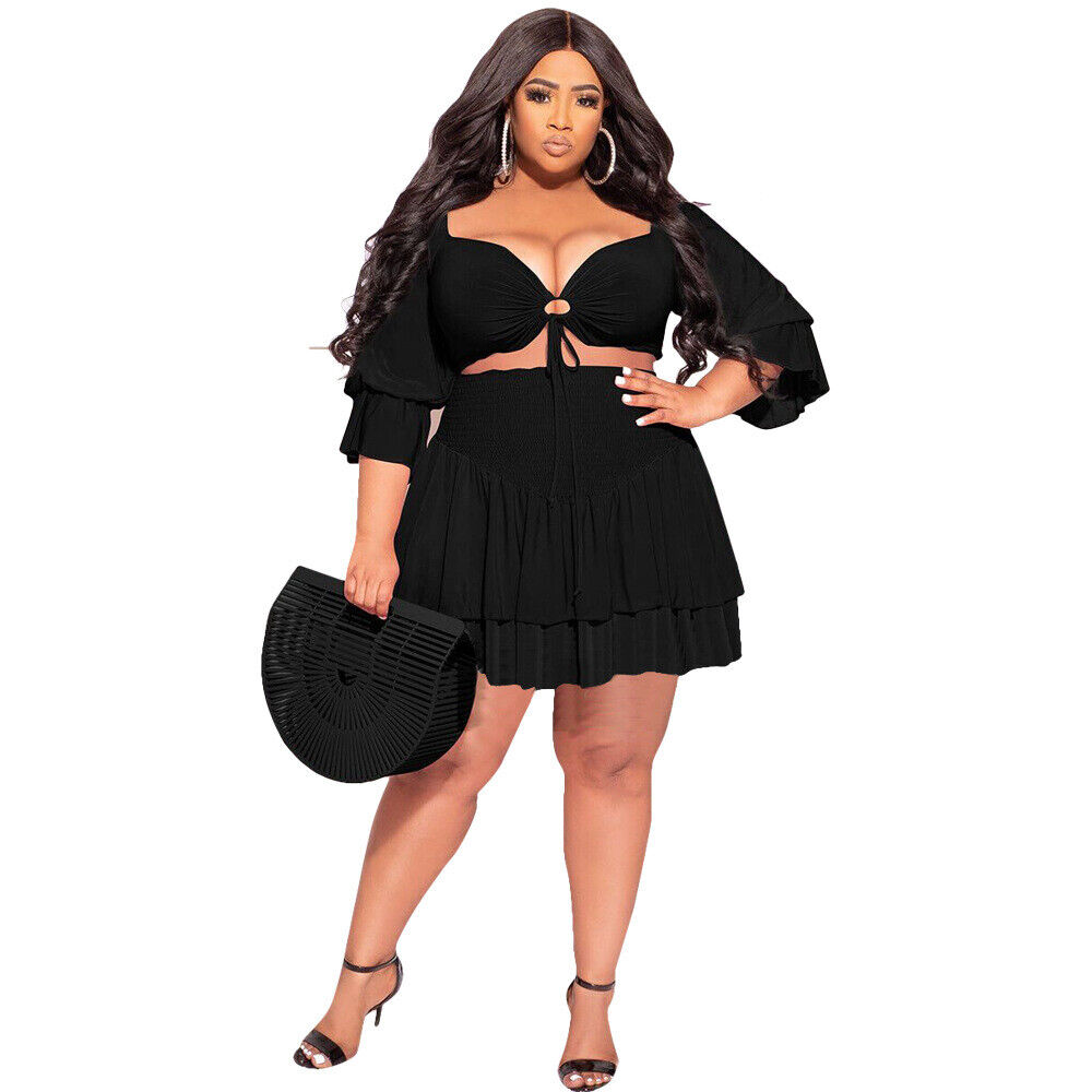 PLUS SIZE SLIT BRALETTE TOP BABY DOLL RUFFLE SWING DRESS