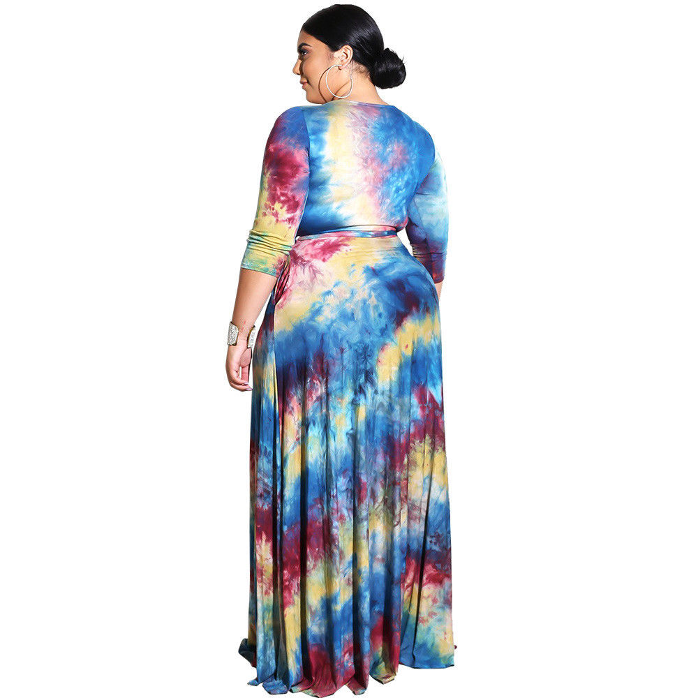 PLUS SIZE TIE DYE FIT & FLARE MAXI DRESS