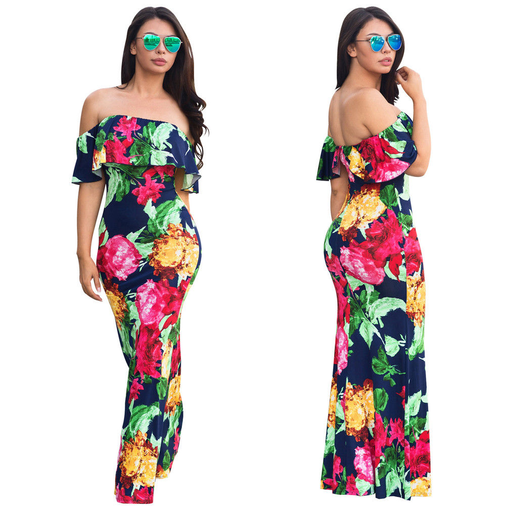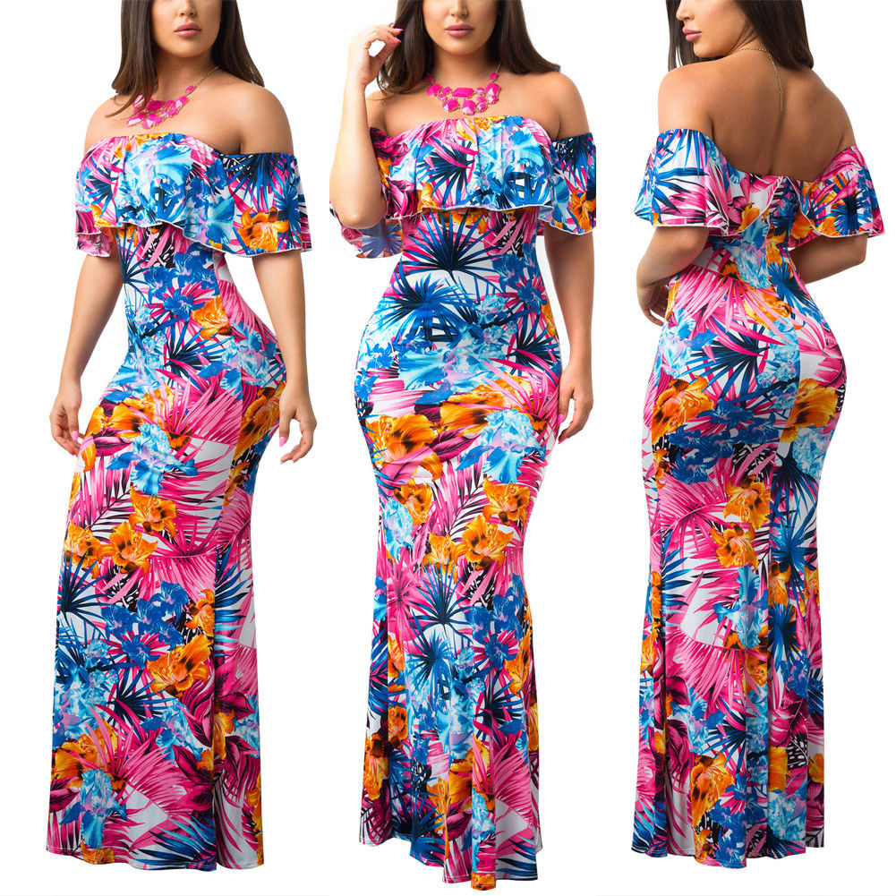 Sexy ruffle off shoulder floral multi print maxi dress!