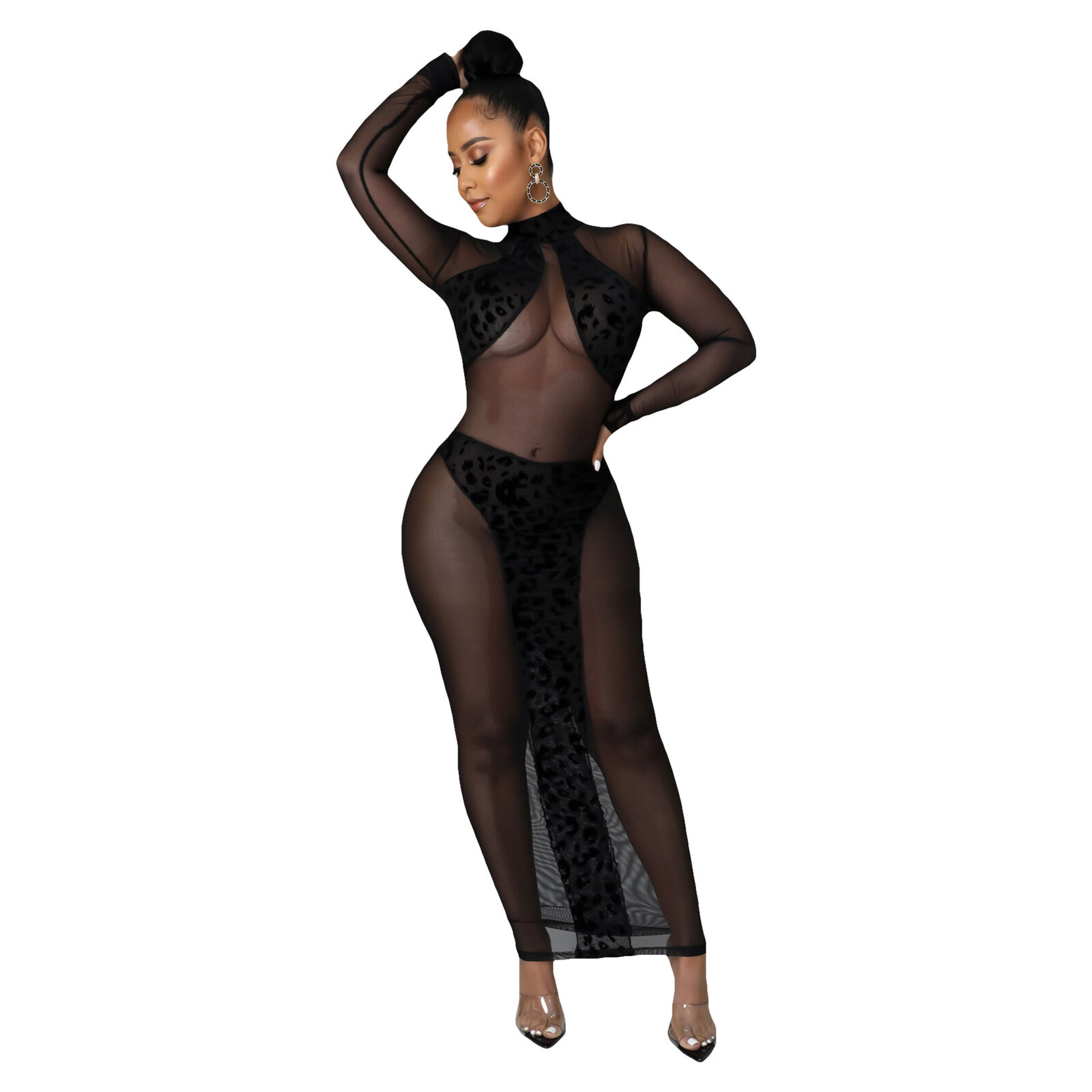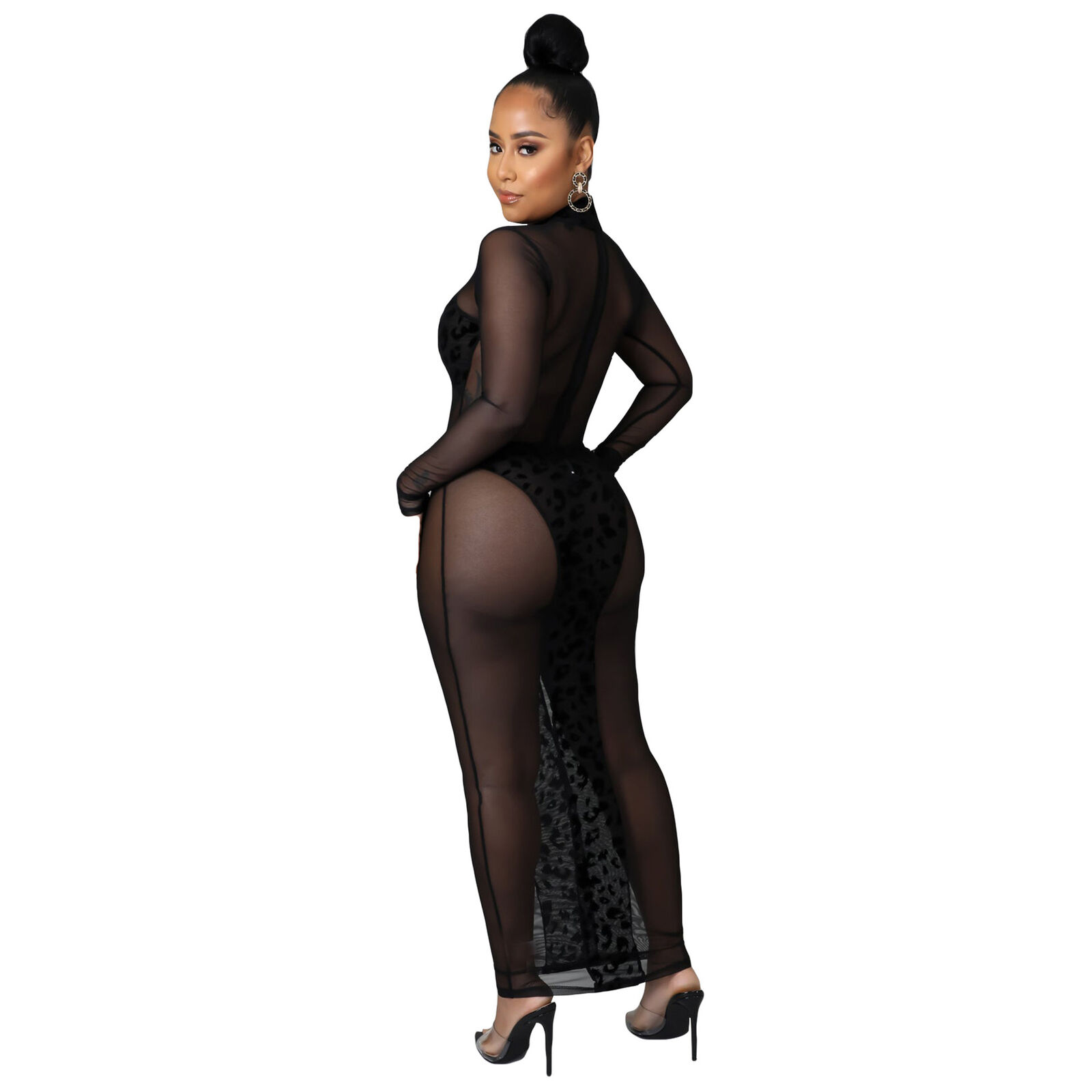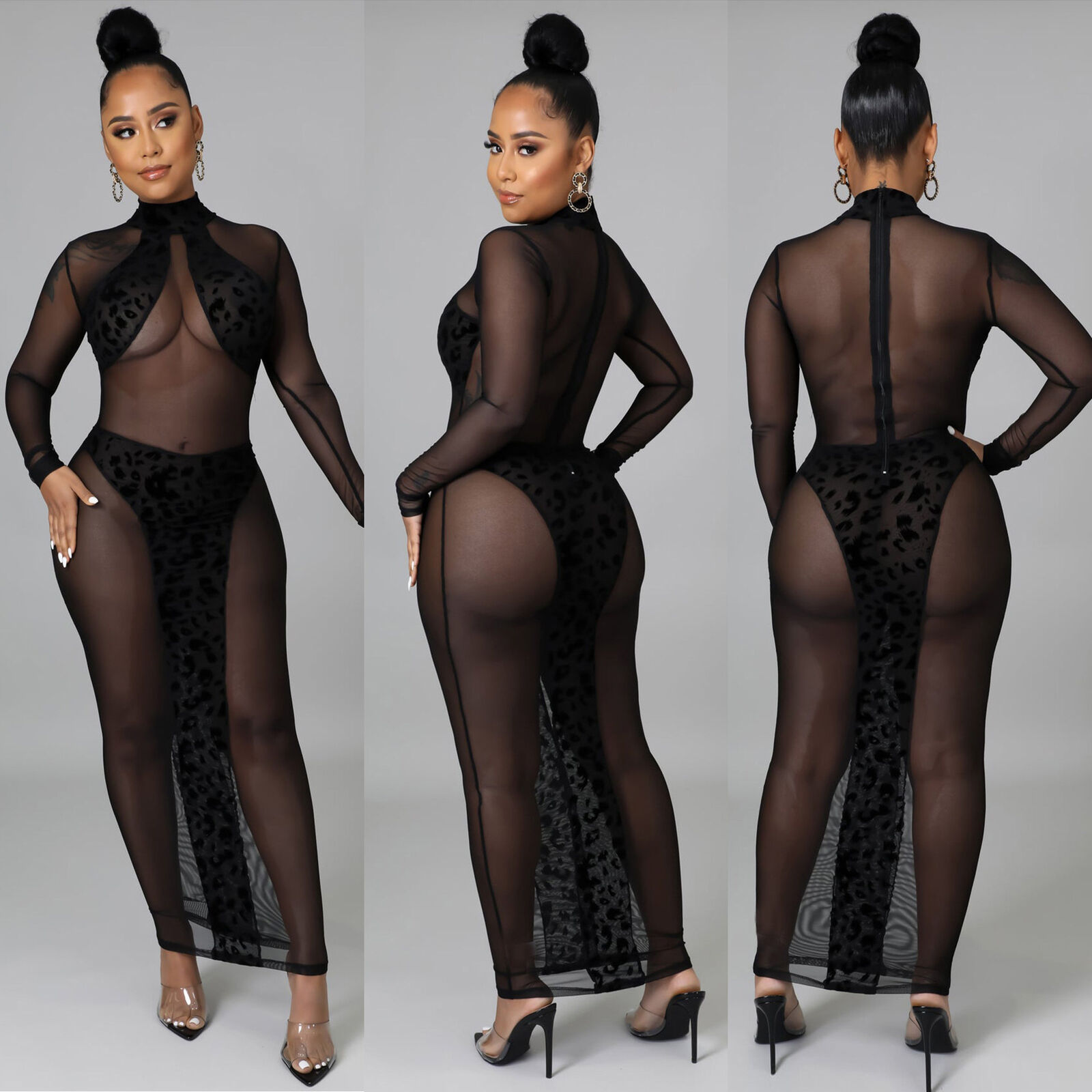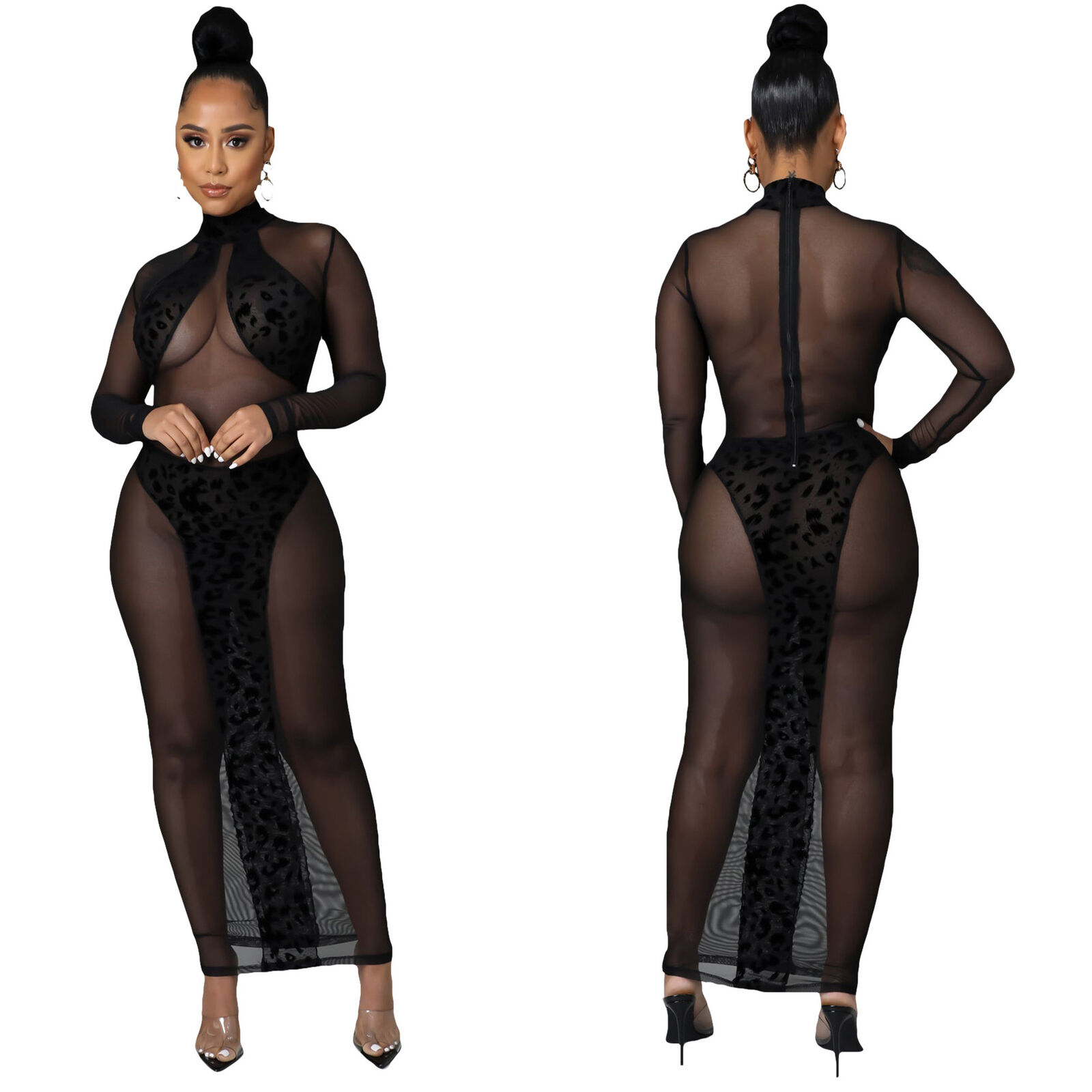 SHEER MESH LEOPARD PRINT PATCHWORK MAXI DRESS *PLUS AVAILABLE*