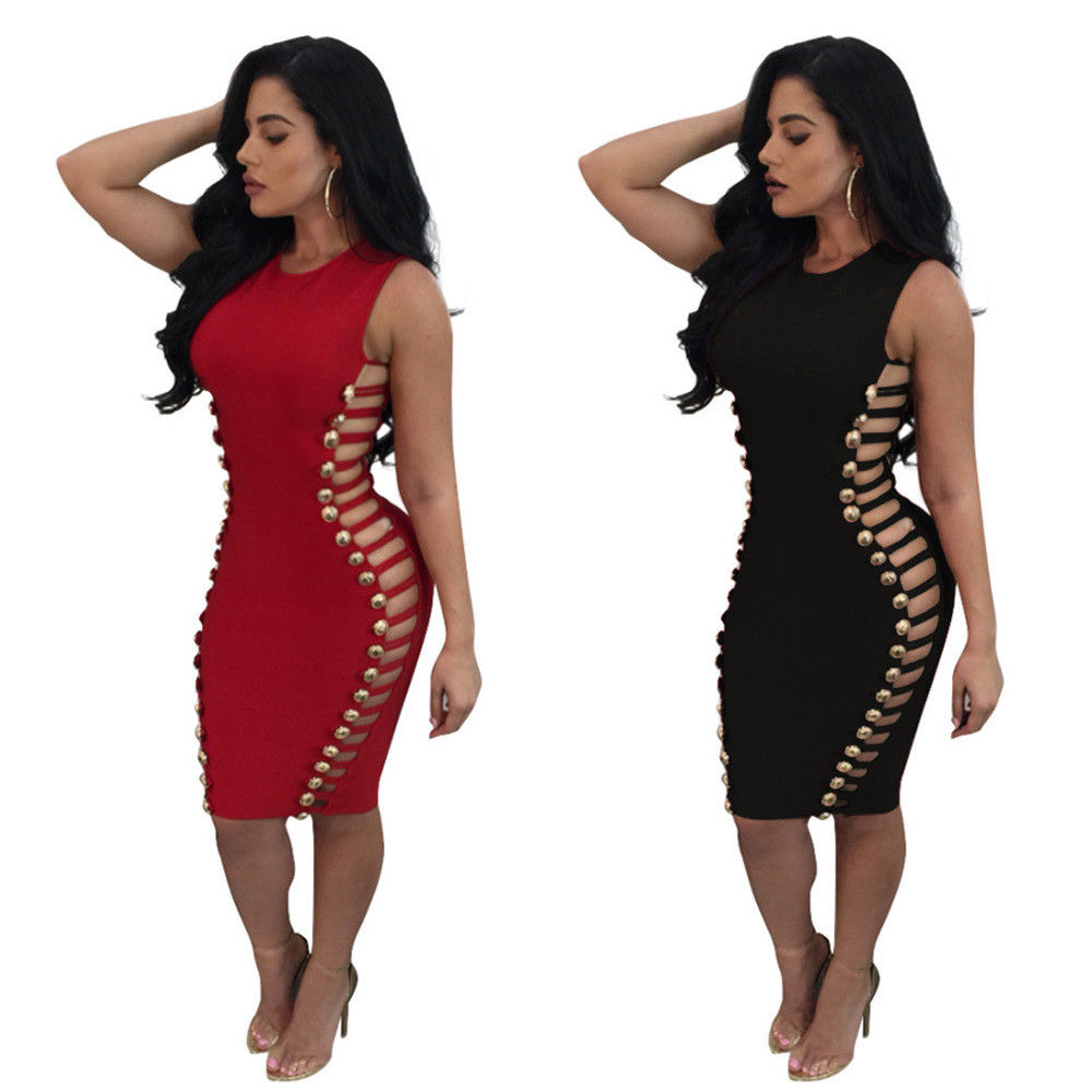 SLEEVELESS HOLLOW SIDE BUTTON DETAIL MIDI DRESS