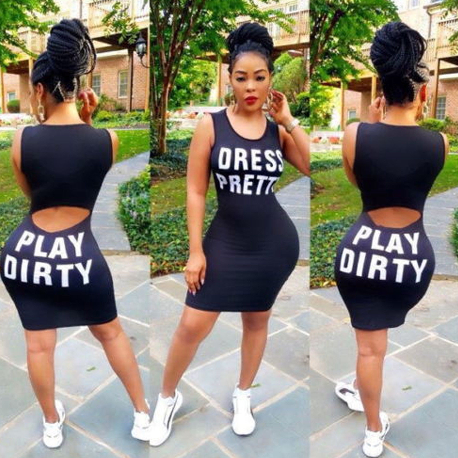 | Color | Black, White | Style: | Stretch, Bodycon Letter Print |